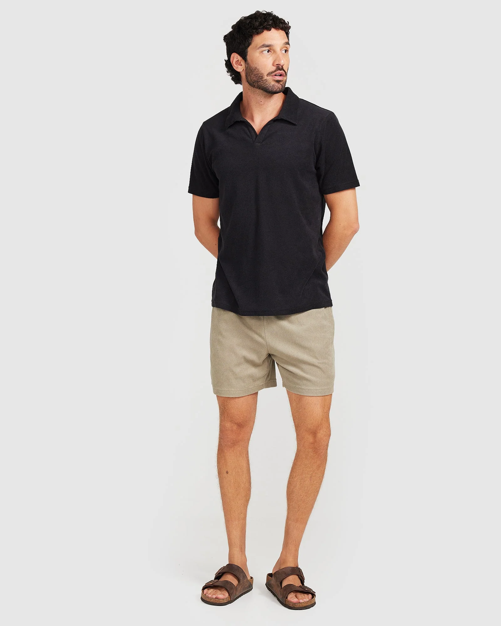 The Terry Towel Polo in Black is a practical piece for any vacay escape. Cut for a relaxed fit from 100% cotton terry towelling, this shirt is a short-sleeve polo style made for those warmer days. Wear it with everything from swim shorts to linen pants.